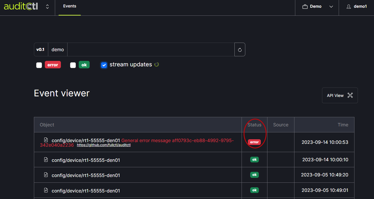 If there are event listings in AuditCtl it means referee pushed a new config. If the event listing shows red in the Status field, it indicates that there was an error.