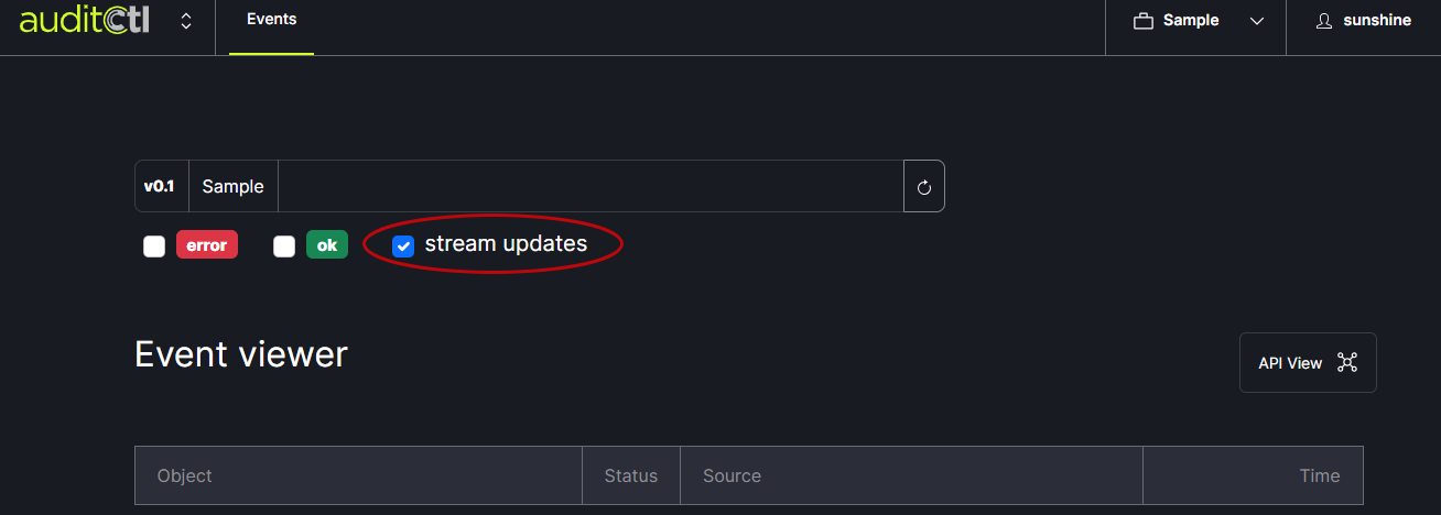 The stream updates check box (when checked) indicates that the feed is a live view. Unchecking the box will provide a snapshot in time.