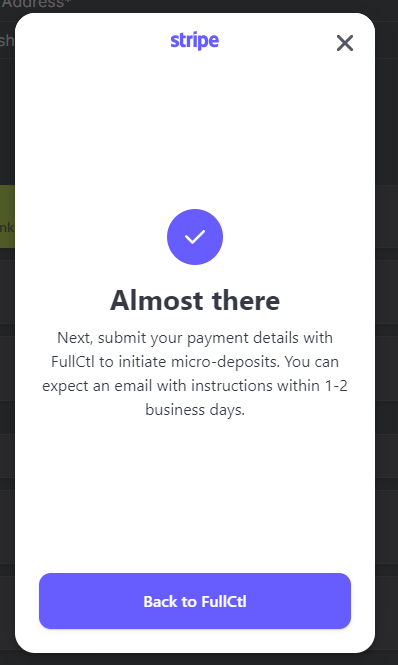 You will receive an email from Stripe explaining that you have signed up for direct debits from FullCtl.