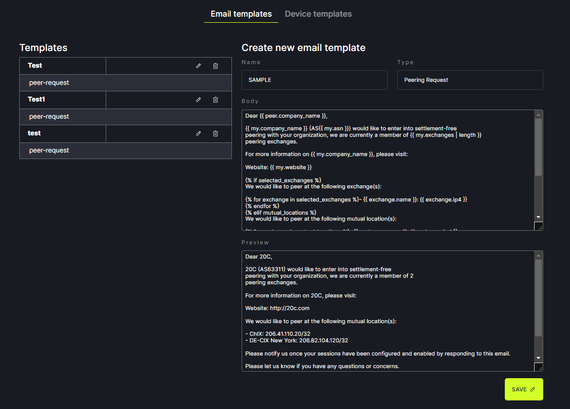 selected_exchanges- list of selected exchanges when opening a peering request through the Networks viewexchange.name- name of the internet exchangeexchange.ip4- ip4 addressexchange.ip6- ip6 address