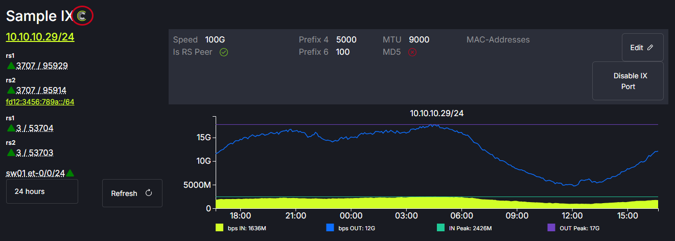 The IX port can be disabled/enabled by clicking the Disable IX Port toggle.