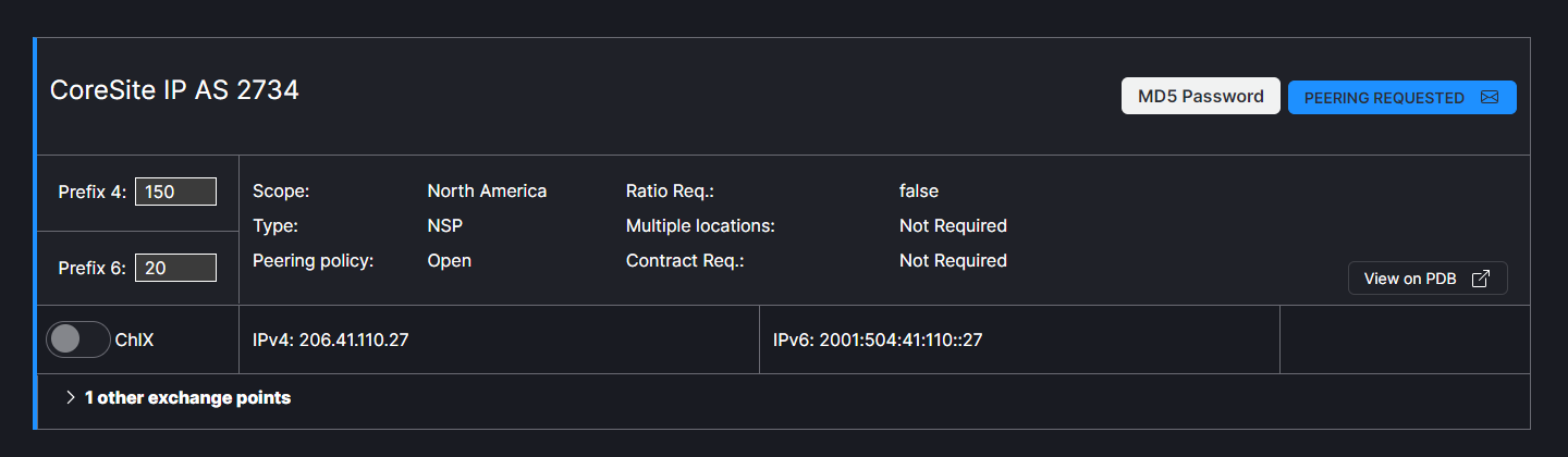 Once the Default or Custom email template has been chosen click Send. When the network receives the message they will reply to the email on file with your PeeringDB account.