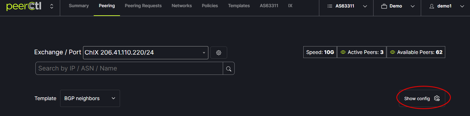 It will also appear in the Device Config popup box. To view, click on Show config on the Peering page.