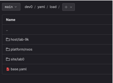 In the following example, for an NXOS device named lab-9k at site lab0, it will load in order: