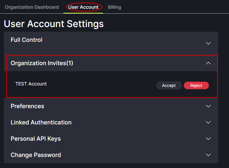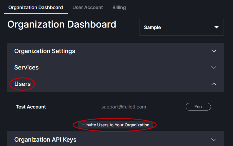 The person invited will receive an email with a link to accept the invitation. When they click on the link in their email they will be directed to the FullCtl website to create an account. If the person already has an account, pending invitations will appear in their user account area under Organization Invites.