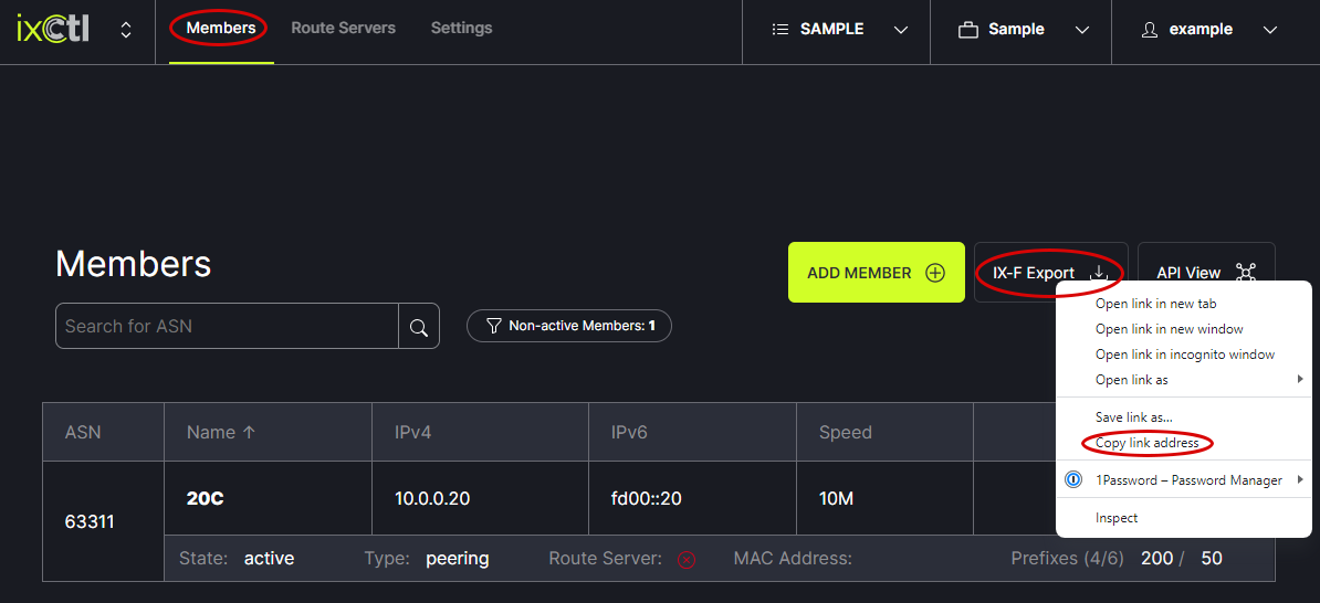 Click on the Members tab at the top of the page. Right click on the IX-F Export button and choose “copy link address.”
