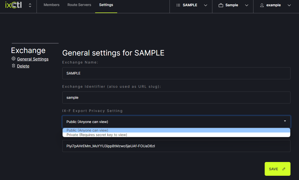 Under IX-F Export Privacy Setting choose “Public (Anyone can view)” or “Private (Requires secret key to view).” Click Save.